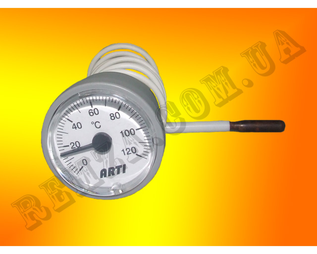 Термометр газовых котлов диаметр 37 мм, диапазон 0 -120 °C, капилляр- 1000 мм., чувствительный элемент - Ø 6,5*15мм, код СТ-37.
